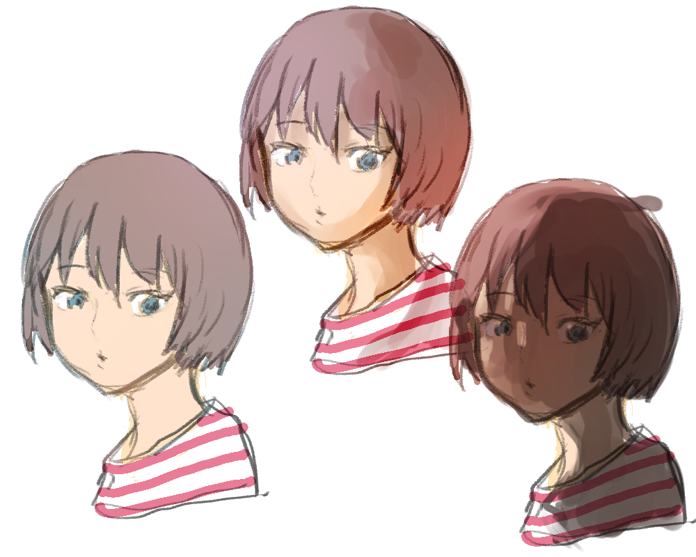 色塗りチュートリアルの本の模写練習です。顔の立体感難しい