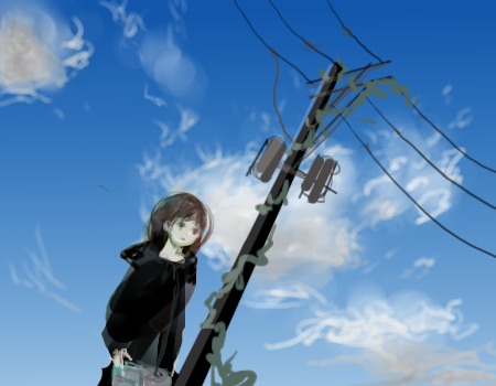 チキンペイントの練習で空を描こうと思ったのですが、あまり描きこみできなくて、人物入れて誤魔化しました。